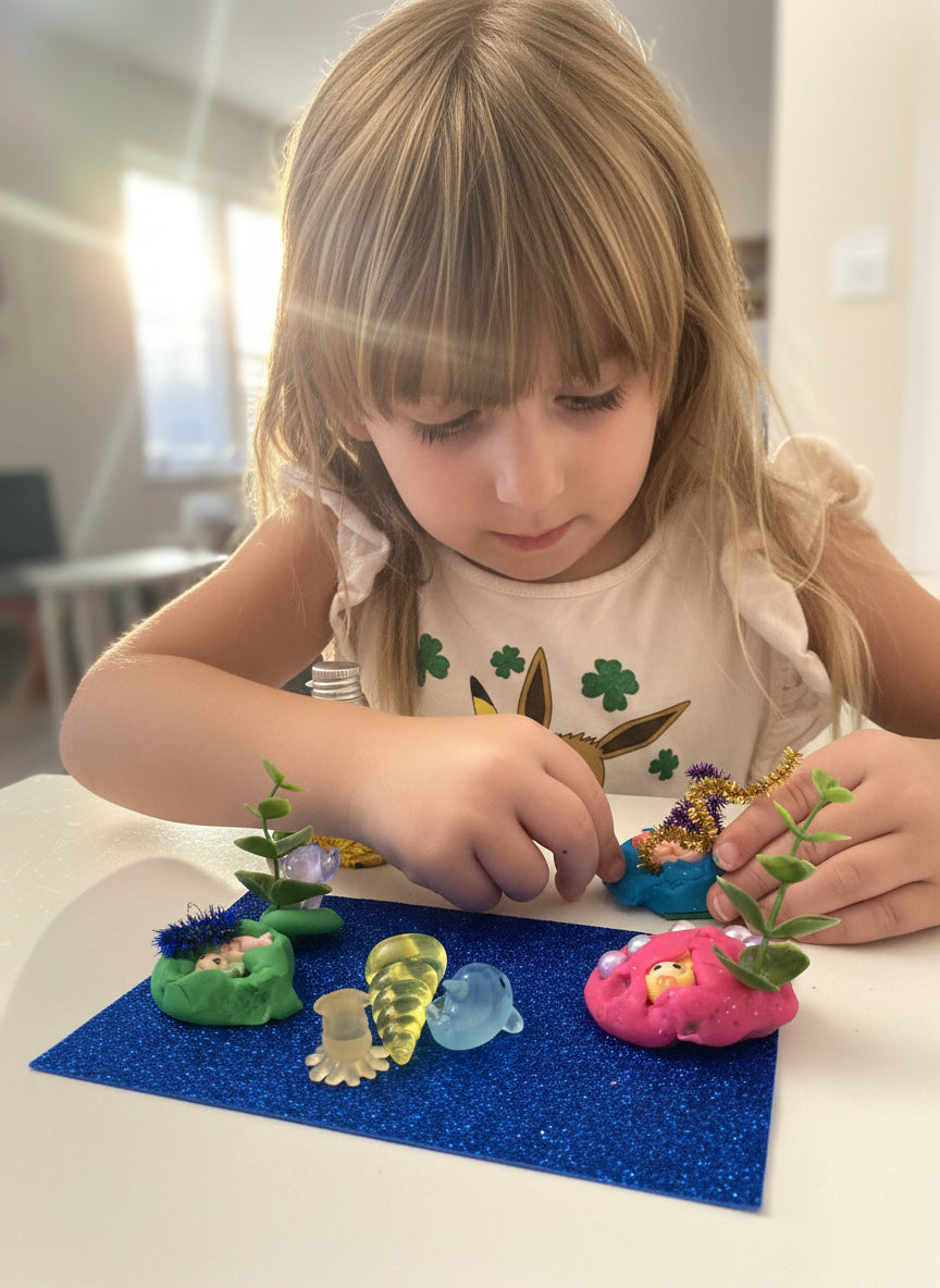 A Nest Kit encourages sensory participation and all types of play with the freedom to be neuro-different! The process and product of play coexists alongside varying sensory needs, which in turn shade the differences in how children seek purpose within their own experience. Some children will pair the theme with creativity and become entranced by a world of imagination. Other children, instead of telling a story with their creation, may seek predictability and visual organization, finding gratification in sequencing and sorting all the treasures. Some children may find comfort in manipulating, squishing, burying, or stacking the tiny & textured objects in a quiet or excited moment, while others may mindlessly shape the dough and engage in an intrapersonal connection that otherwise would have been too overwhelming to sustain. And equally valued, there are those who will prefer, beyond anything, the sensory medium to remain treasure & texture free at all times. Inspired by our daughter who joyfully sorts and orders objects by particularity, and as a tribute to all who dance to the beat of their own drum, we hope that a Nest Kit extends authentic comfort and connection for all the children in your nest.